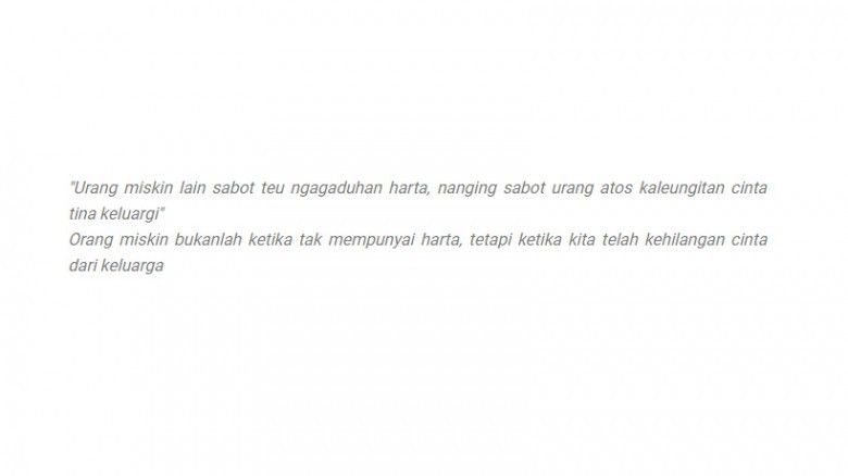 "Urang miskin lain sabot teu ngagaduhan harta, nangis sabot urang atos kaleungitan cinta tina keluargi."
