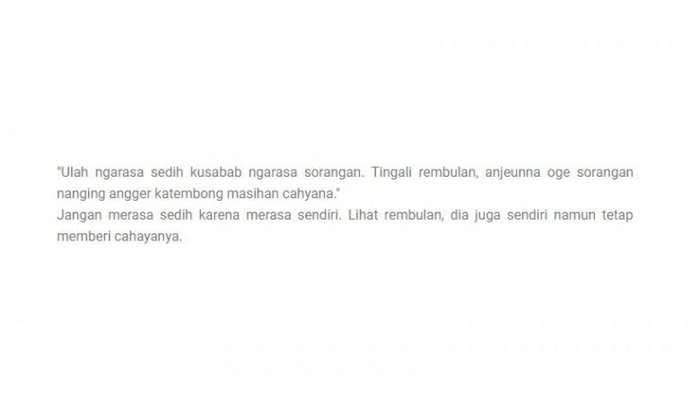 "Ulah ngarasa sedih kusabab ngarasa sorangan. Tingali rembulan, anjeunna oge sorangan nanging angger katembong masihan cahyana."