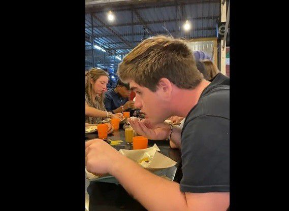 Nampak salah satu rekan dari pria bule itu seperti memberikan cara bagaimana mereka makan pakai tangan, termasuk posisi tangan saat mengambil nasi dan memasukkan ke dalam mulut. Kemungkinan beberapa pria bule itu baru datang ke Indonesia sehingga belum terbiasa makan pakai tangan.