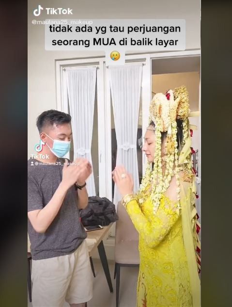 Cowok ini mengungkap perjuangan MUA dibalik layar. Ia menunjukkan video hasil maha karyanya saat merias seorang perempuan.