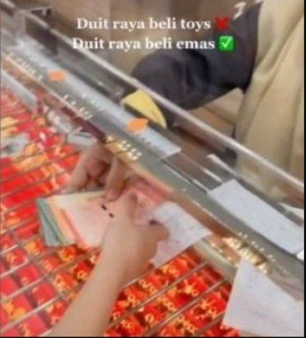 "Uang lebaran bukan untuk beli mainan, uang lebaran untuk beli emas," tulis @diyanarazip2 di video seperti dikutip Beritahits.id, Selasa (10/05/2022).