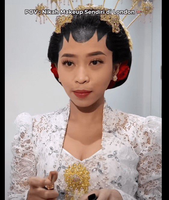 Viral wanita menikah adat Jawa dandan sendiri di Inggris (via tiktok)