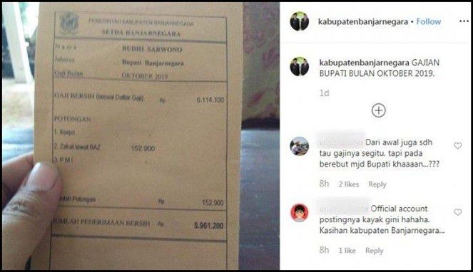Slip gaji tersebut pertama kali diunggah di akun Instagram @kabupatenbanjarnegara. Dari unggahan tersebut, diketahui jika gaji Budhi sebesar Rp6.114.100, namun dipotong zakat BAZ sebesar Rp152.900. Budhi sendiri beralasan jika unggahan tersebut bertujuan agar pemerintah pusat lebih memperhatikan gaji pemerintah daerah. Ia juga menyebut bahwa gaji yang ia terima terlalu kecil.