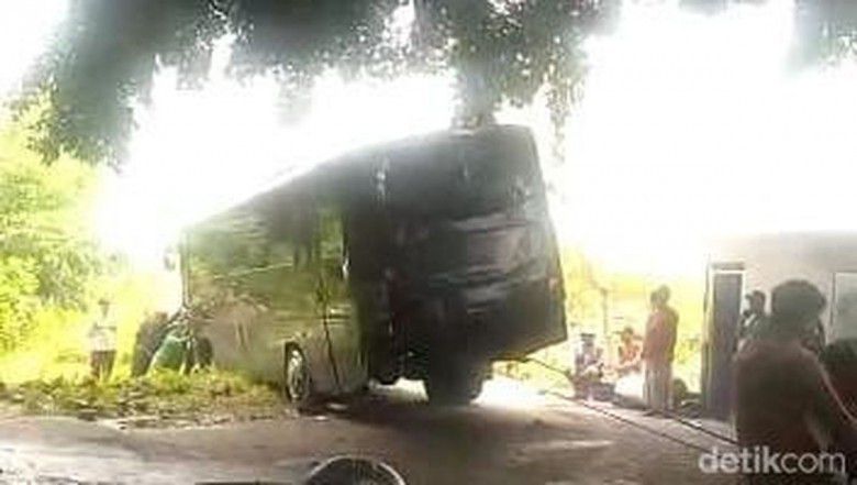 Bus pemprov Jatim terperosok di kuburan Dusun Talun (detik.com)