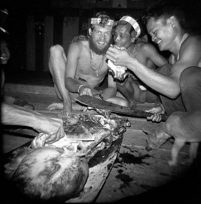 Momen saat Amundsen dan orang suku Mentawai menyembelih hewan buruan (sosok.grid.id)