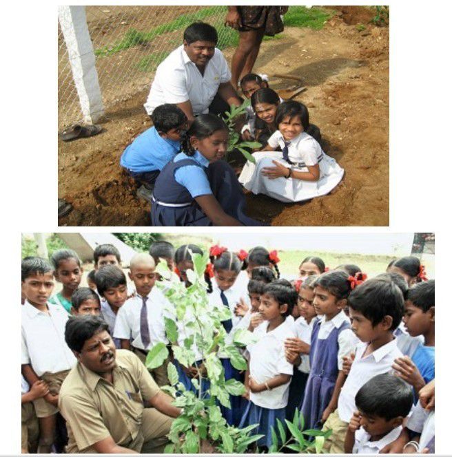Marimuthu Yoganatha mengajari anak sekolah menanam pohon (bookfachievers.com)