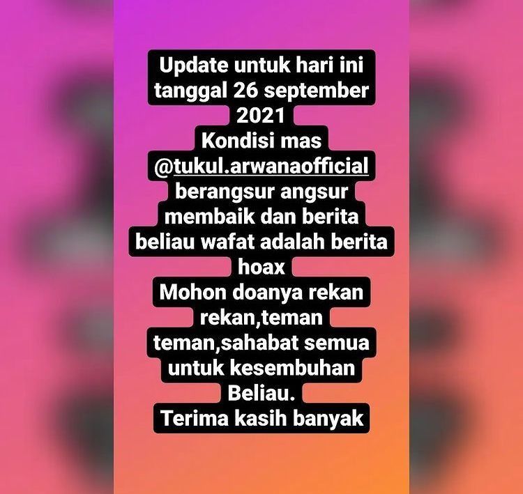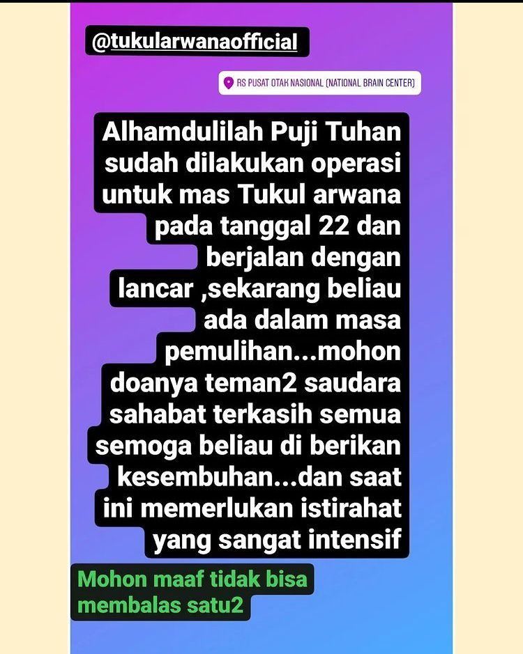 Syukurlah, Tukul Arwana saat ini kondisinya membaik pasca menjalani operasi. Semoga cepat sembuh dan sehat selalu ya, Tukul!