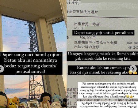 Wanita hamil itu juga menuliskan curhatnya bahwa ia mendapatkan tunjangan selama hamil dari pemerintah Jepang. Meskipun harus menuliskan data-data pribadi. Saat hamil ia mendapat uang sekitar Rp 5 juta dan setelah melahirkan mendapatkan uang Rp 5 juta jadi total yang didapatkan mencapai Rp 10 juta.