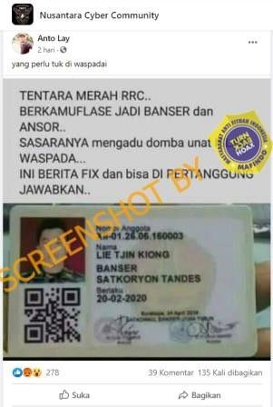 Ternyata itu tak benar loh gengs, Kepala Satkorwil Banser Jatim Gus Abid Umar menegaskan, Lie Tjin Kiong ini merupakan salah seorang pengurus Masjid Cheng Ho Surabaya yang telah mengikuti Diklatsar Banser.”