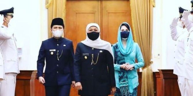 Khofifah Indar Parawansa didampingi Emil Dardak dan Arumi Bachsin (via Merdeka)