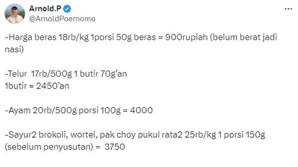 Menanggapi hal itu, Arnold pun sempat bertanya kepada followersnya apakah benar bisa mendapatkan makan dengan harga demikian.