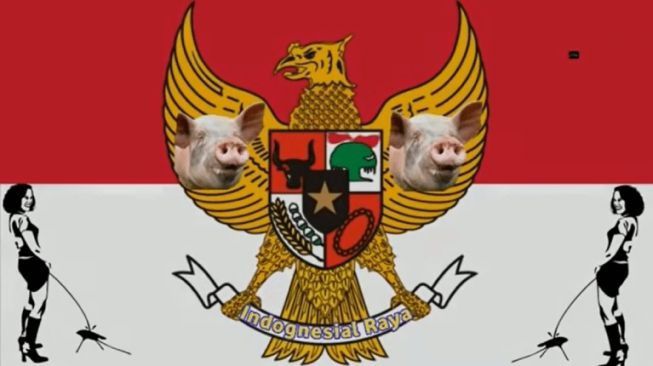 Sayap gagah burung garuda yang menjadi lambang dasar negara kita diganti simbol penghinaan kepala hewan babi.