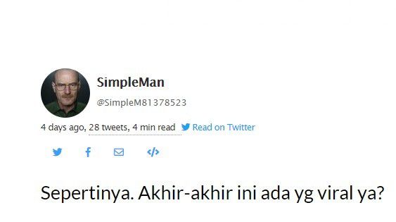 "Untuk yg membagi-bagikan cerita ini diluar platform twitter, saya tidak marah, sebaliknya, saya justru seneng, berterimakasih malah, karena pesan yg saya coba sampaikan lewat cerita ini bisa sampai, dibaca dan dilihat lebih banyak orang."