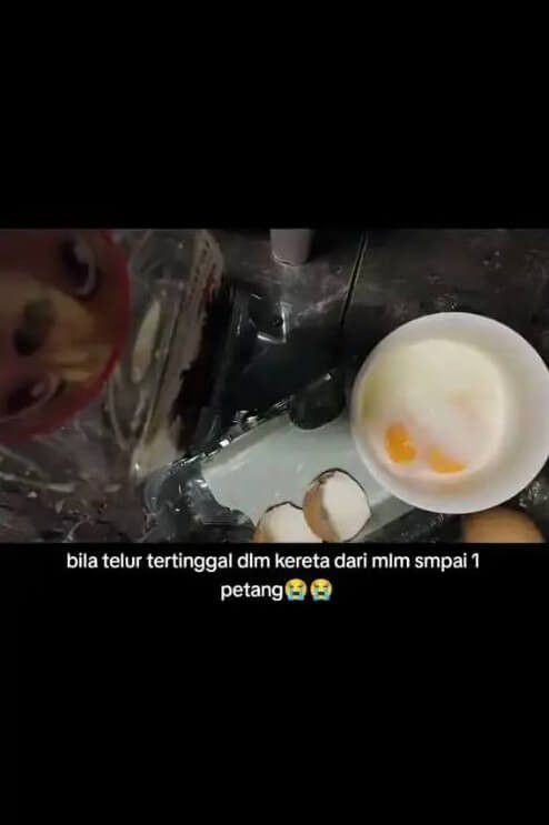 Ia meninggalkan belanjaan telurnya jam 10 malam dan baru mengeluarkannya di esok hari di jam 1 siang. Alhasil, telur belanjaannya itu mendekam di dalam mobil selama 15 jam.
