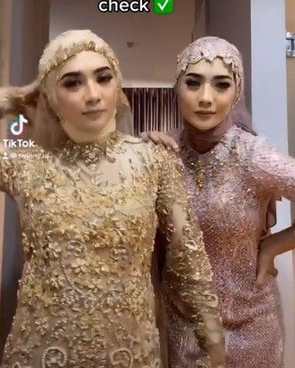 Pernikahan anak kembar itu untungnya dilakukan dengan konsep yang sama. Jadi tidak ada perbedaan dalam segi busana pernikahan yang mereka pakai di hari pernikahan. Mereka mengenakan gaun indah yang terkesan mewah.