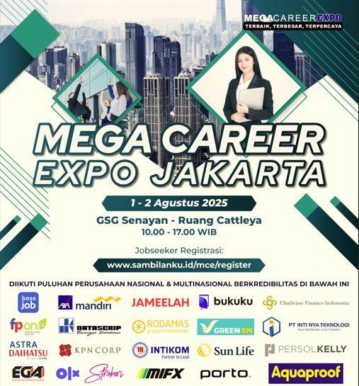 Tentu saja di Mega Career Expo 2025 menghadirkan puluhan perusahaan nasional dan multinasional yang membuka lowongan dan kesempatan kerja bagi para pencari kerja dalam mengeksplorasi peluang karier dari berbagai bidang dan jenjang pendidikan.