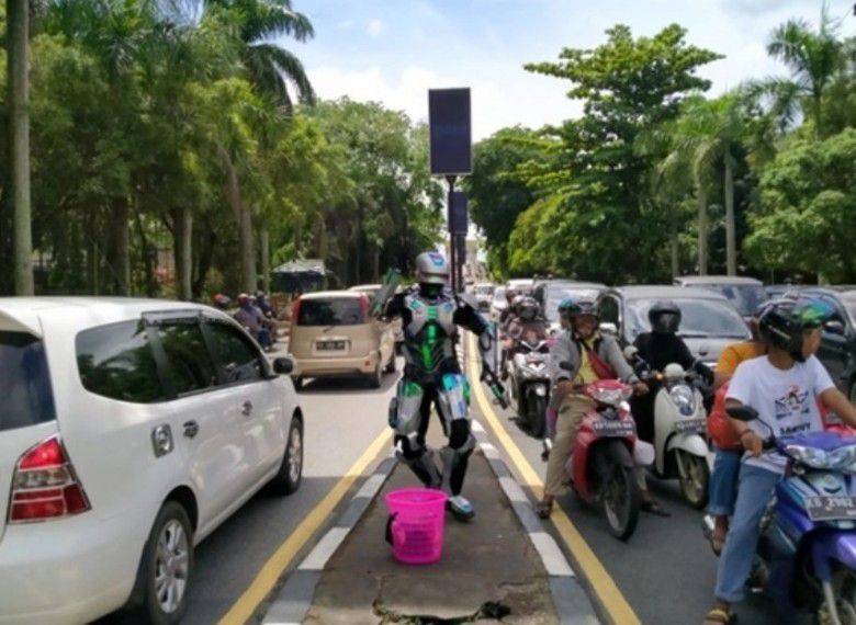 Namun, dibalik aktivitasnya yang sering menarik perhatian para pengendara, siapa sangka bahwa kisah hidupnya sangat memilukan. Orang yang dibalik kostum Robocop tersebut adalah seorang pria berusia 49 tahun dengan nama Muhammad.