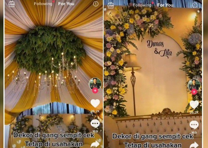Semuanya berawal dari unggahan akun TikTok @langgeng_wedding yang menampilkan video dekorasi pernikahan di gang sempit dan menjadi viral di media sosial.