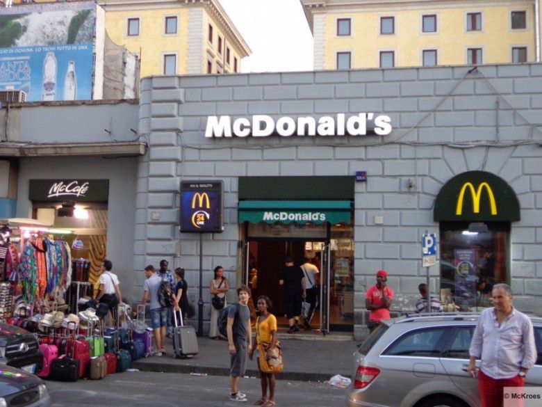 Pada tahun 1986, rantai makanan cepat saji membuka lokasi di Piazza di Spagna, di kaki Spanish Steps. Pada saat itu, itu adalah McDonald's terbesar di dunia.