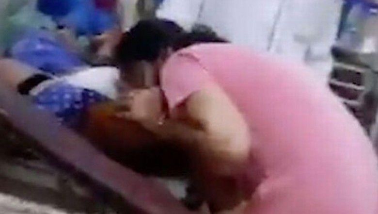 Seorang wanita terlihat sedang memberi napas buatan kepada ibunya yang sekarat akibat terinfeksi virus Corona (india today)