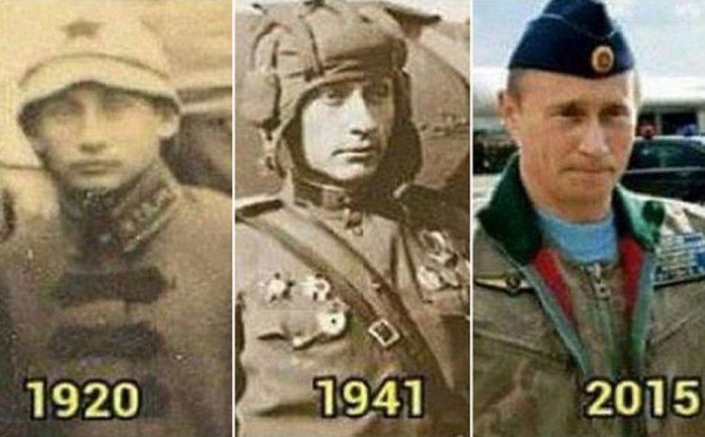 Sementara foto yang paling kanan adalah Presiden Rusia Vladimir Putin menenakan seragam militer Rusia. Tertulis tahun 2015. Terus, gimana ... beneran gak sih orang ini adalah Drakula yang hidup abadi?