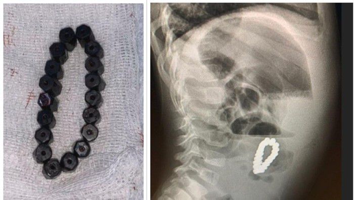 Sudah banyak terjadi kasus anak kecil yang menelan benda-benda asing ke dalam tubuhnya. Seperti bocah laki-laki berusia 4 tahun ini yang baru ketahuan jika ia menelan gelang magnet.