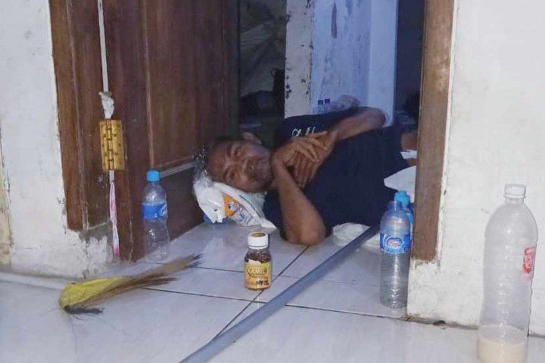 Saat ditemui wartawan pun, kondisinya sangat memprihatinkan. Ia terbaring di lantai beralaskan tikar dengan bantal dari botol air mineral bekas dengan ditumpuki popok.