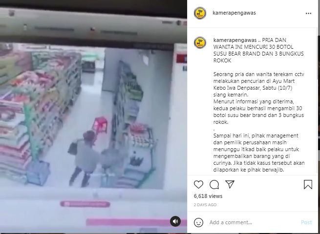 Hal itu tercermin salam sebuah rekaman kamera CCTV yang memperlihatkan aksi pencurian dilakukan oleh sejoli. Rekemanan yang beredar baru-baru ini pun menuai sorotan publik. Sebab, sebanyak 30 kaleng Susu Beruang raib dibawa kabur sepasang kekasih tersebut.