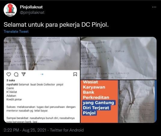 Thread Twitter soal karyawan bank yang bunuh diri karena terjerat utang (suara.com)