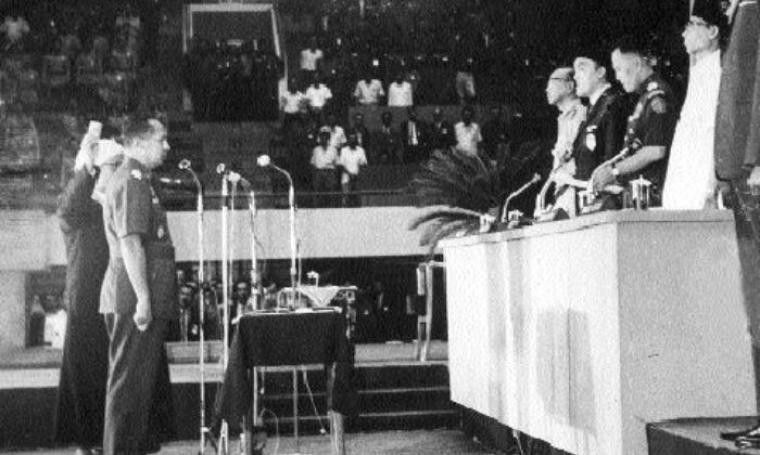 Pada akhir Sidang Istimewa MPRS, 12 Maret 1967, Jenderal Soeharto dilantik dan diambil sumpah untuk menjadi kepla negara. Pengangkatan dilakukan oleh Ketua MPRS Jenderal TN1 Abdul Haris Nasution.