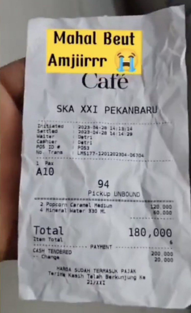 Viral pria curhat soal harga popcorn bioskop yang dianggap kemahalan (via twitter)