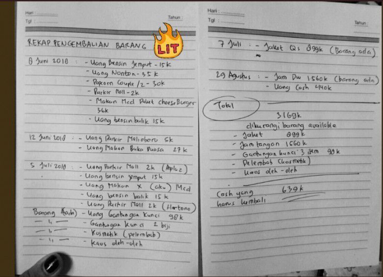 Nampaknya @FreditaIstijarN juga mengunggah hasil list berapa banyak yang sudah dihabiskan mantanya kepadanya, wkwkwkw.