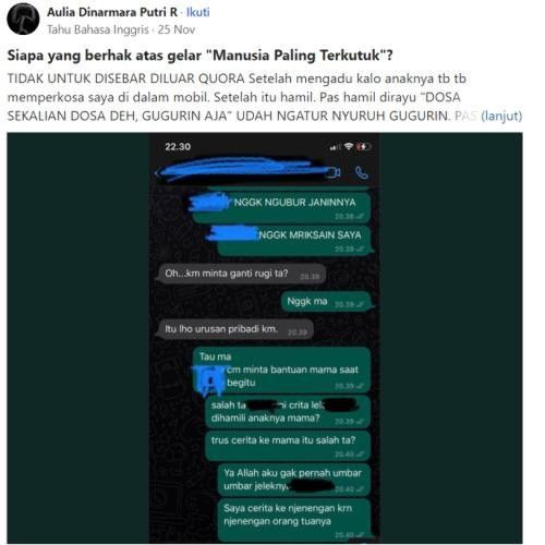 "Saya didiagnosa Depresi Mayor dan dianjurkan rawat inap namun saya menolak. Saya tidak pernah berbicara. Saya hanya bisa menulis atau mengetik sesuatu yg ingin saya sampaikan. Itulah sebabnya kadang saya mengirimi mama pesan singkat 'ma, aku takut. aku pengen mati ma'" tuisnya.
