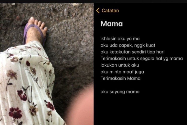 "Setiap hari, setiap mama berangkat kerja, setiap mama memandangku, setiap jam setiap waktu. Beliau selalu memohon kepada saya untuk tetap hidup," tulisnya pada 1 Desember 2021.