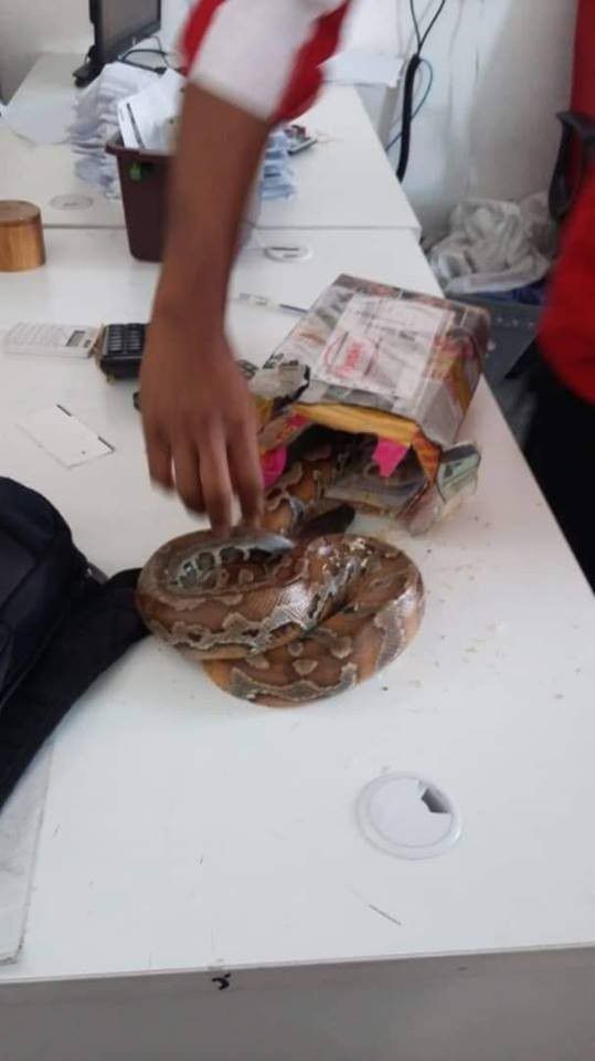 Paketan ular sanca (Facebook/ Info Roadblock JPJ/POLIS)