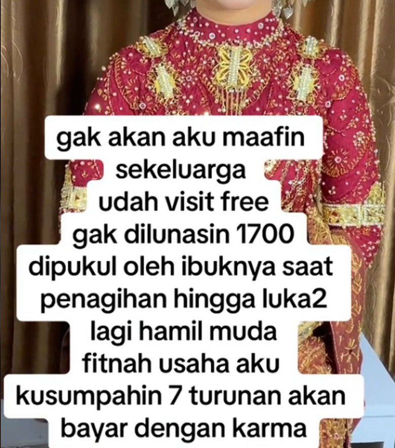 Gak akan aku maafin sekeluarga sudah visit free gak lunasin Rp 1,7 Juta dipukul oleh ibunya saat penagihan hingga luka-luka lagi hamil muda. Fitnah usaha aku kusumpahin 7 turunan akan bayar dengan karma," tulis akun TikTok @nabillaaulia_makeup.