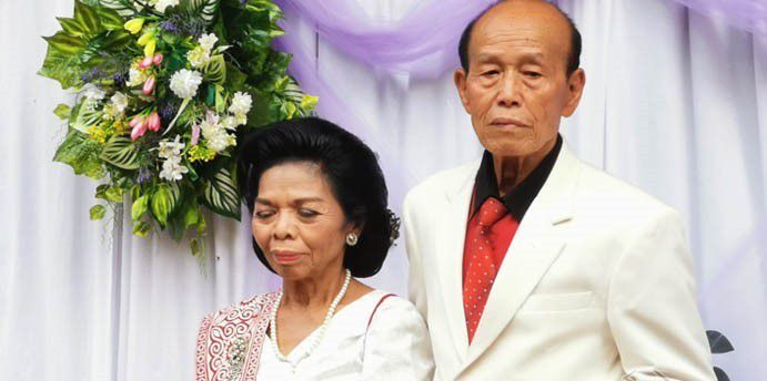 Pasangan lanjut usia di Tana Toraja, Sulawesi Selatan ini misalnya. Pasangan Petrus Sampebuba dan Mince Tankin pertama kali bertemu di gereja dan jatuh cinta. Padahal keduanya sudah tak muda lagi. Diketahui Oetrus Sampebuba sudah berusia 81 tahun dan Mince Tankin berusia 61 tahun.