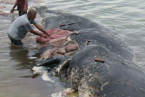 Paus yang terdampar tersebut, kabarnya isi perutnya menelan sampah hingga 5,9 kg lhoo gengs. Wah..malang sekali yak nasib paus ini, tingkah laku manusia yang membuang sampah sembarangan berakibat fatal pada makhluk hidup jenis lainnya tersebut. Populasi mereka nampaknya sudah tercemar dengan limbah sampah. Jika sudah tercemar dengan limbah sampah ya..kasihanlah, mereka akan memakan sampah tersebut, hingga merusak jaringan organ tubuh mereka sendiri.