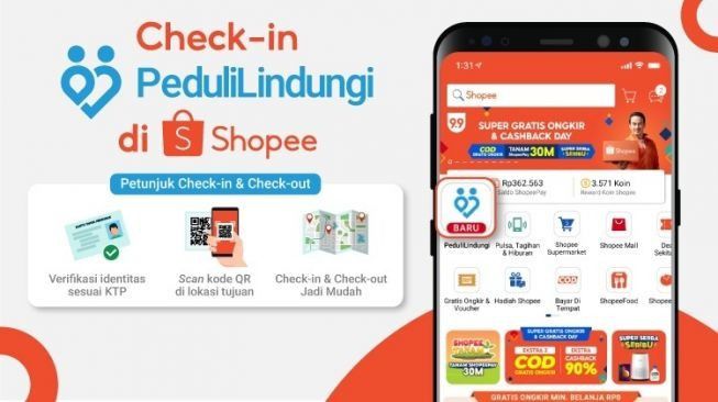 Melalui fitur PeduliLindungi, pengguna Shopee bisa melakukan scan QR Code pada waktu check-in dan check-out di lokasi publik langsung dalam aplikasi tanpa harus mengunduh aplikasi lain. Fitur ini juga langsung tersedia di halaman depan aplikasi Shopee.