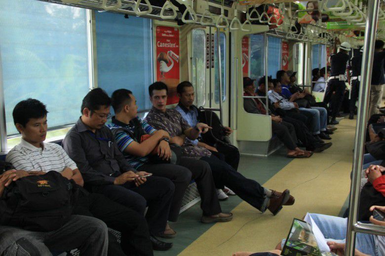 Beberapa foto lain juga beredar. Masih di dalam commuter line, kali ini Primus mengenakan batik lengan pendek dan tanpa masker. Ia pun dalam posisi duduk di gerbong dan santai berbicara dengan penumpang lain.