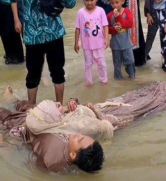 Pengantin di Tengah Banjit (TikTok @pengengakinsecure)