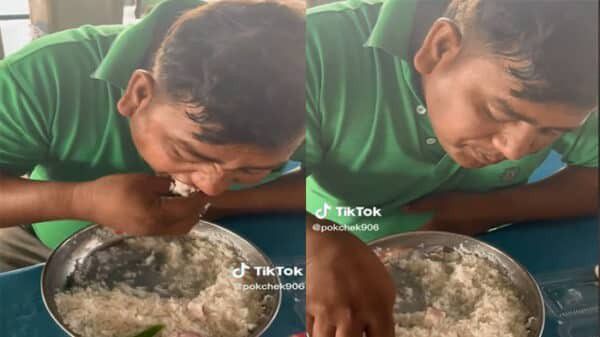 Kisahnya pun viral setelah diunggah oleh akun TikTok bernama @pokchek906. Di video tersebut, ia memperlihatkan temannya yang sedang menikmati hidangan makanan. Ternyata, makanan yang disantapnya itu berisikan bawang bombay, cabai dan garam.
