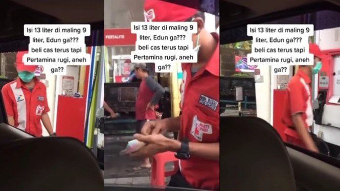 Pengemudi perempuan yang sedang mengisi bahan bakar kendaraannya, saat itu menangkap basah petugas yang mengurangi jumlah liter bensin. Seharusnya, sang perempuan bisa mendapat 13 liter bensin dengan uang Rp100 ribu, tapi sang petugas hanya mengisikannya sekitar 9 liter.