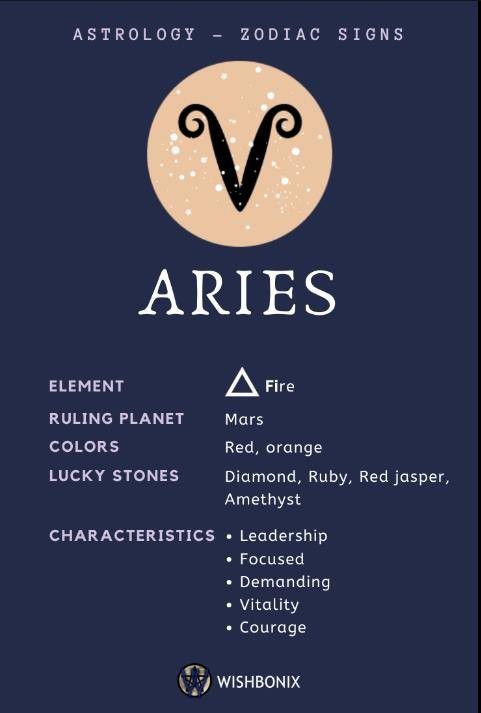 Aries Maret sepenuhnya dikuasai oleh api, dan Mars menjadi satu-satunya planet penguasa mereka. Dan meskipun semangat Aries yang lahir di bulan April sudah berkurang, mereka masih menerangi setiap jalan yang mereka lalui. Menurut Nina Kahn, Aries April memiliki sedikit pengaruh Jupiter dalam kehidupan sehari-hari mereka, yang membuat mereka lebih cenderung melanggar aturan dan mengambil risiko.