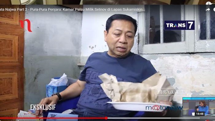 Koruptor Setyo Novanto saat menunjukkan makanan narapidana (aceh.tribunnews.com)