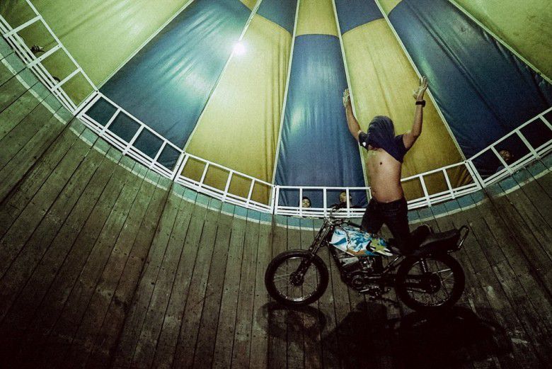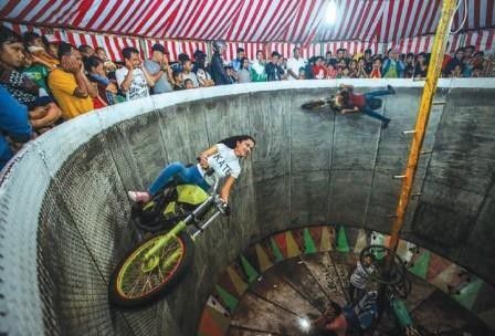Para pengendara motor yang beratraksi di arena juga mempertontonkan atraksi lainnya seperti melepas tangan dari kemudi. Sementara motornya tetap berputar-putar seolah-olah ada sesuatu yang gak nampak yang mengemudikannya.