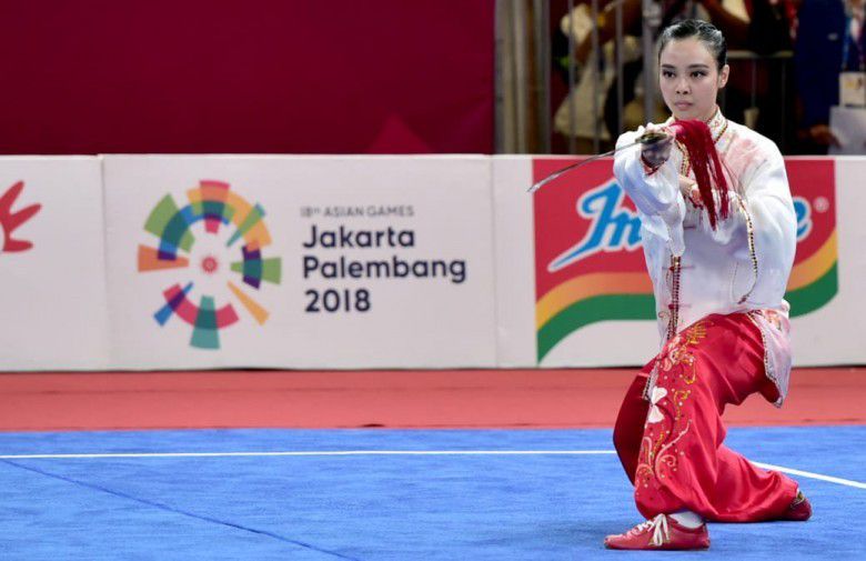 Aksi Lindswell Kwok di Asian Games 2018 (Twitter @KemensetnegRI)
