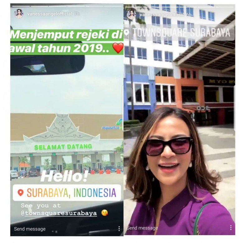 "Hello Surabaya. Menjemput rejeki di awal tahun 2019. See u at Townsquare Surabaya," tulis Vanessa dalam keterangan unggahan Insta Story-nya tersebut.