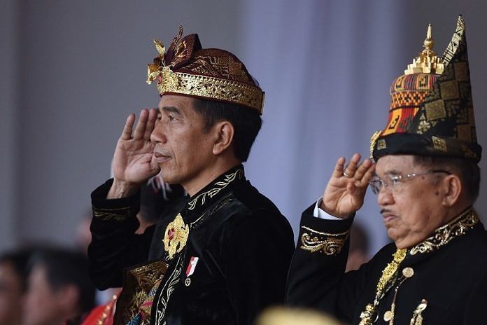 Presiden Joko Widodo mengenakan baju adat Kustim asal Kalimantan Timur(Kaltim) dalam upacara Peringatan Detik-Detik Proklamasi di Istana Negara, Ibu Kota Nusantara (IKN), Kalimantan Timur, Sabtu.