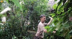 Jalani aktivitas berkebun membuat pria bule ini setiap ke kebun membawa peralatan seperti cangkul, golok, dan alat-alat lainnya.Marko memiliki kebun yang lumayan luas di kampung tersebut.